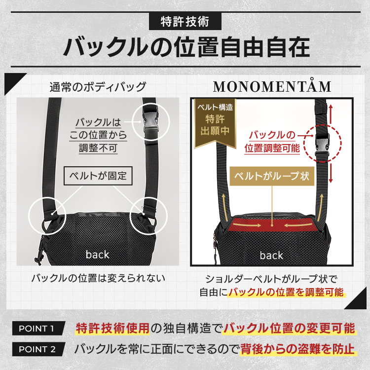 「何を入れるか」が自然と整理される構造です。持ち物を最小限にすることで、動きやすさと身軽さを保てます。